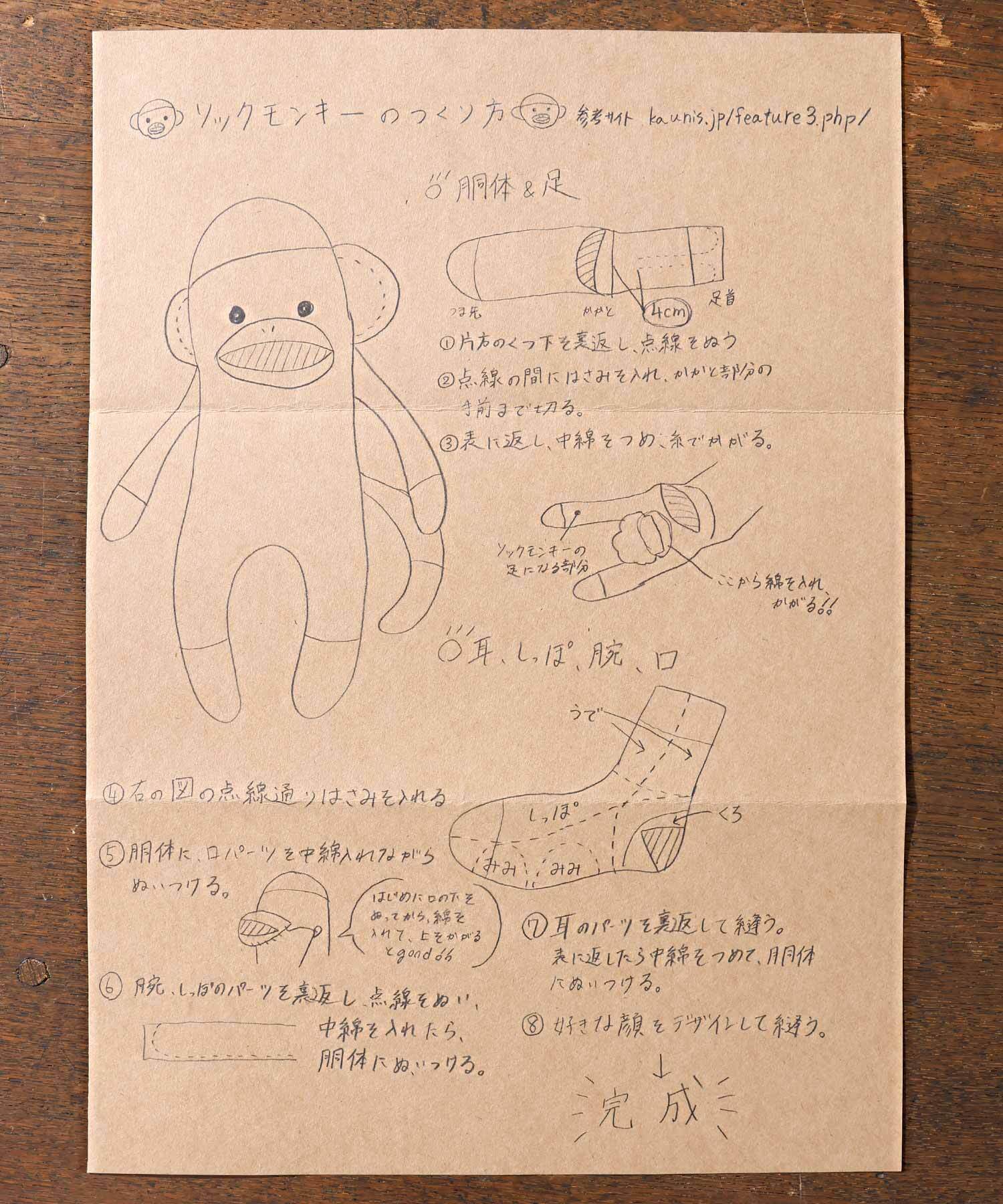 ソックモンキーのレシピ付き。履き潰した後もお楽しみいただけます。