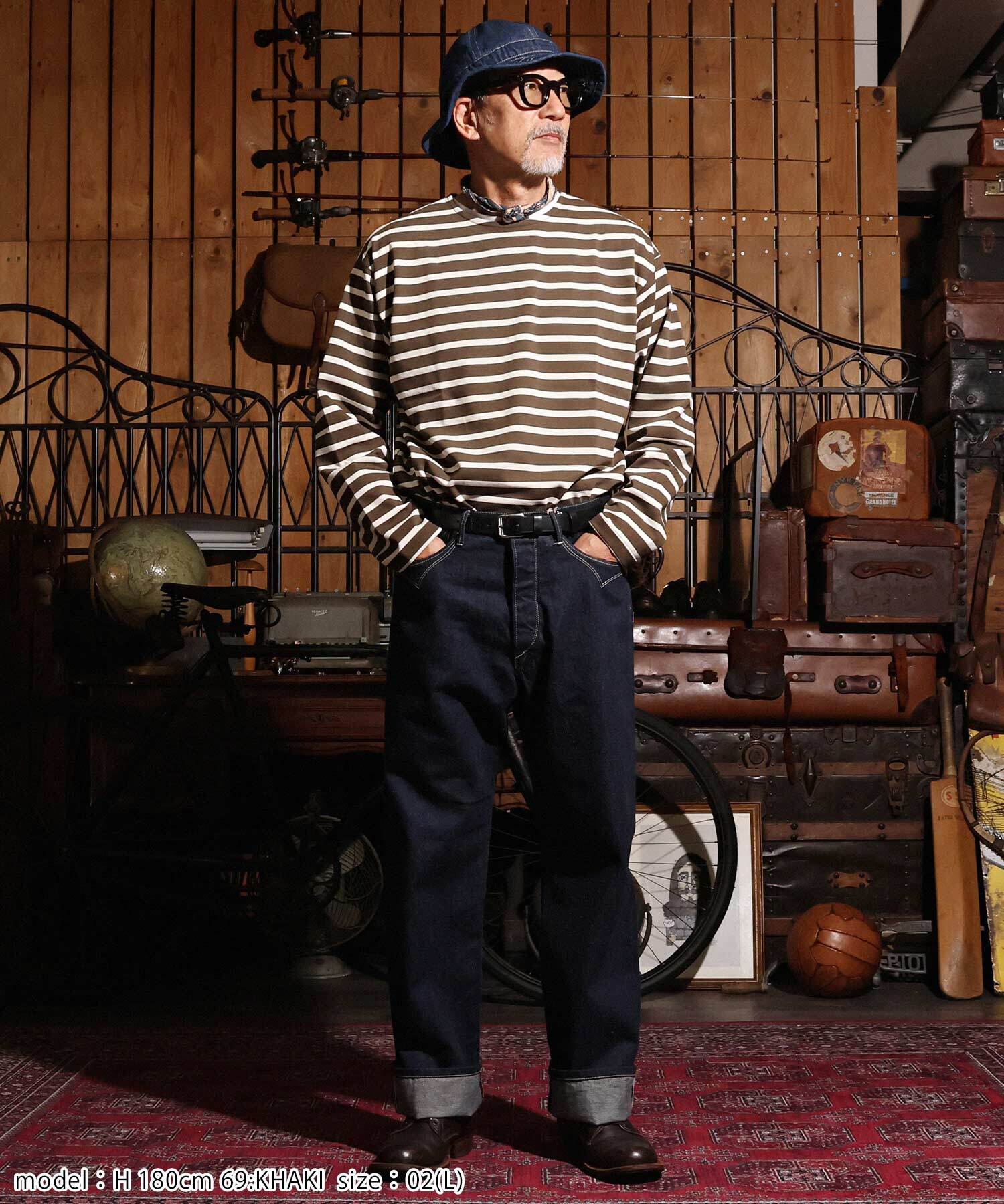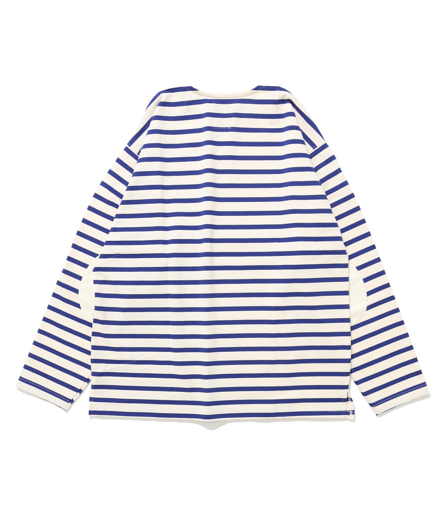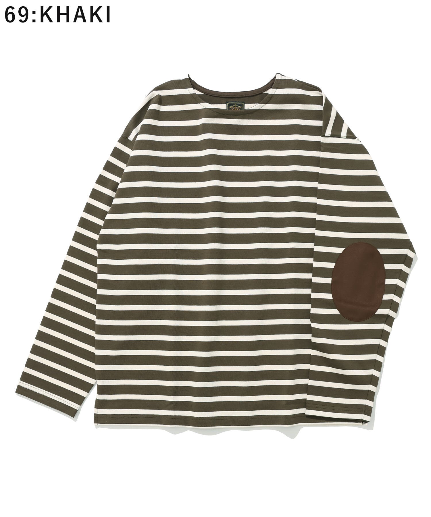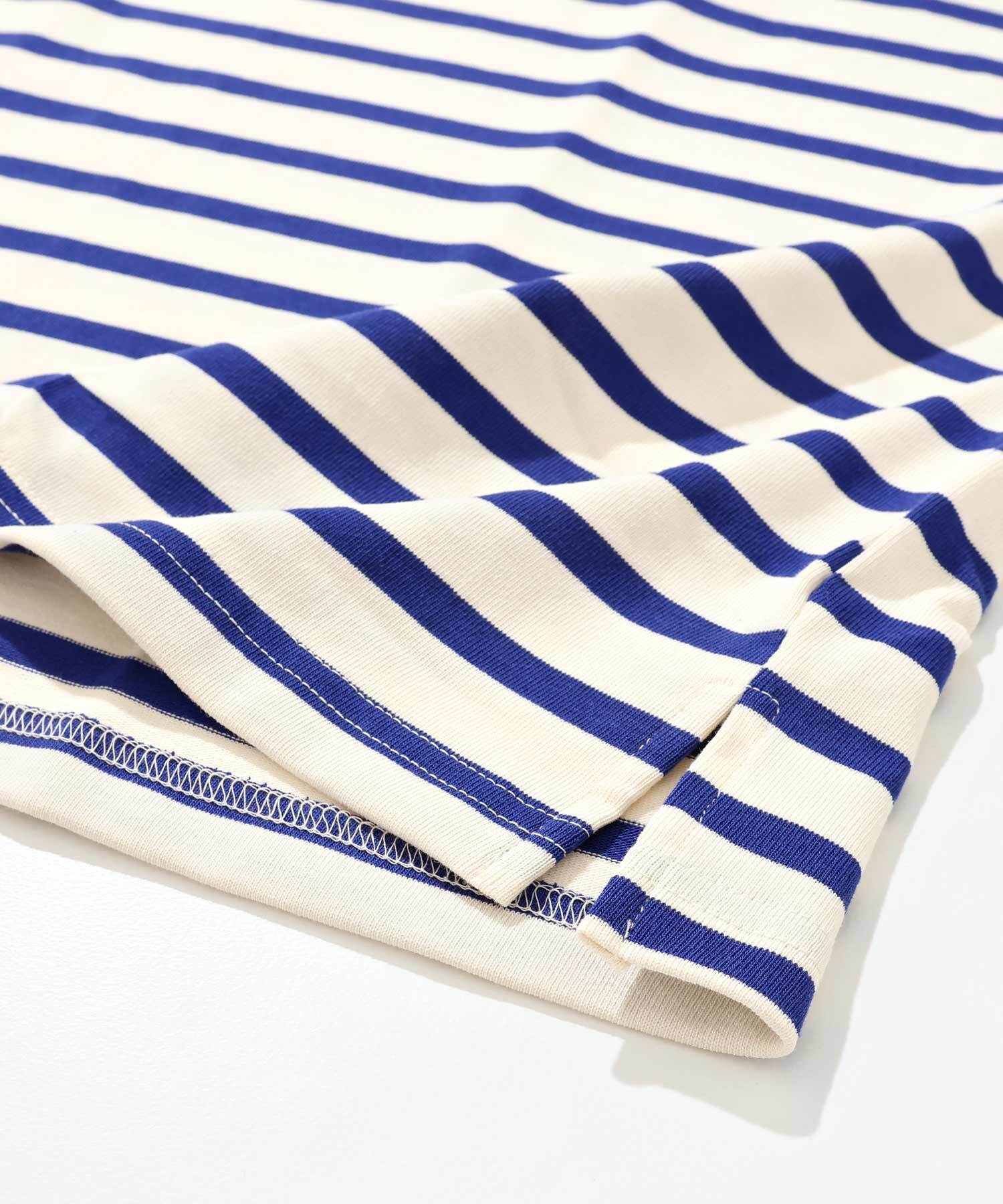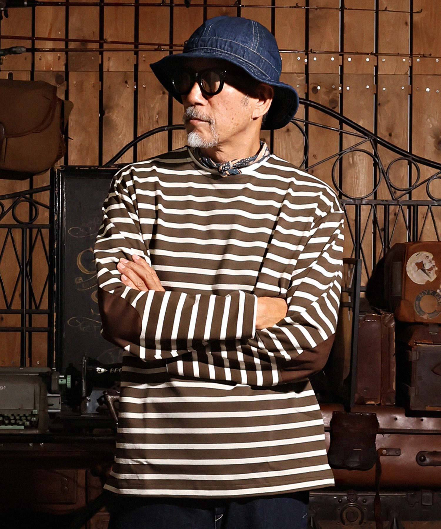 ボートネックが主流のボーダーを丸首でメンズライクに設計した、