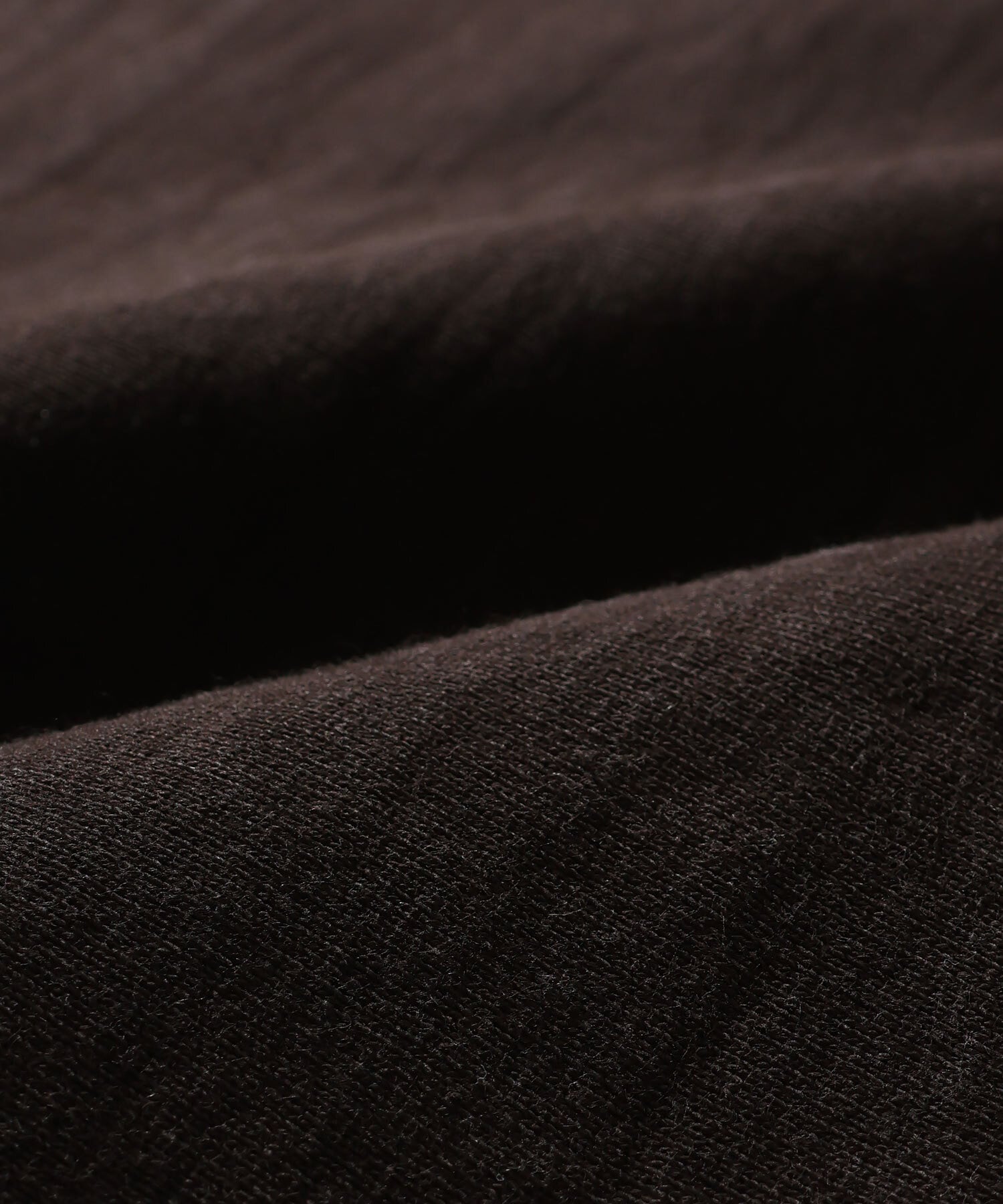 空紡⽷を使⽤したオリジナルの⽣地は素朴な表情で、