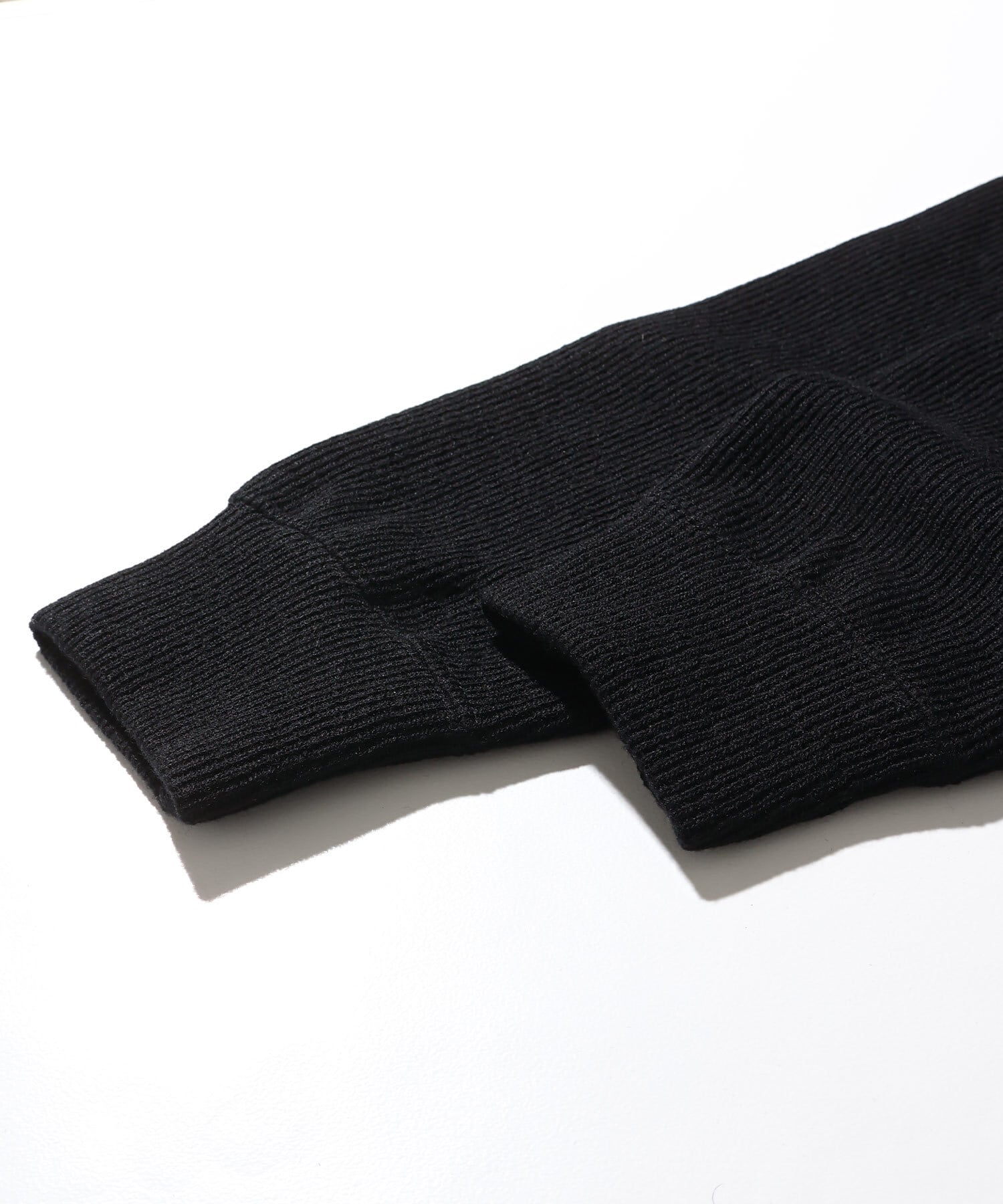ローゲージリブニットに⾒えながら軽くハリのある商品に仕上がっています。