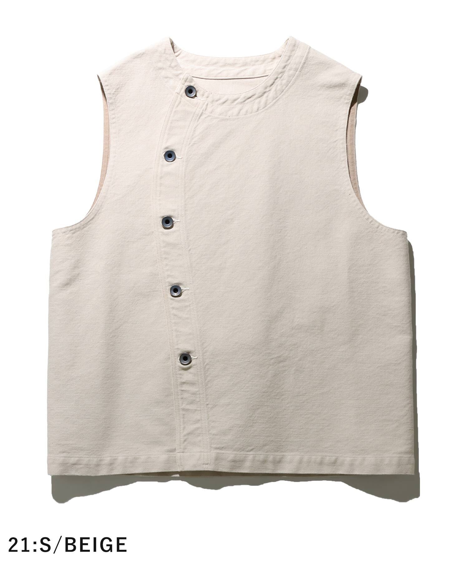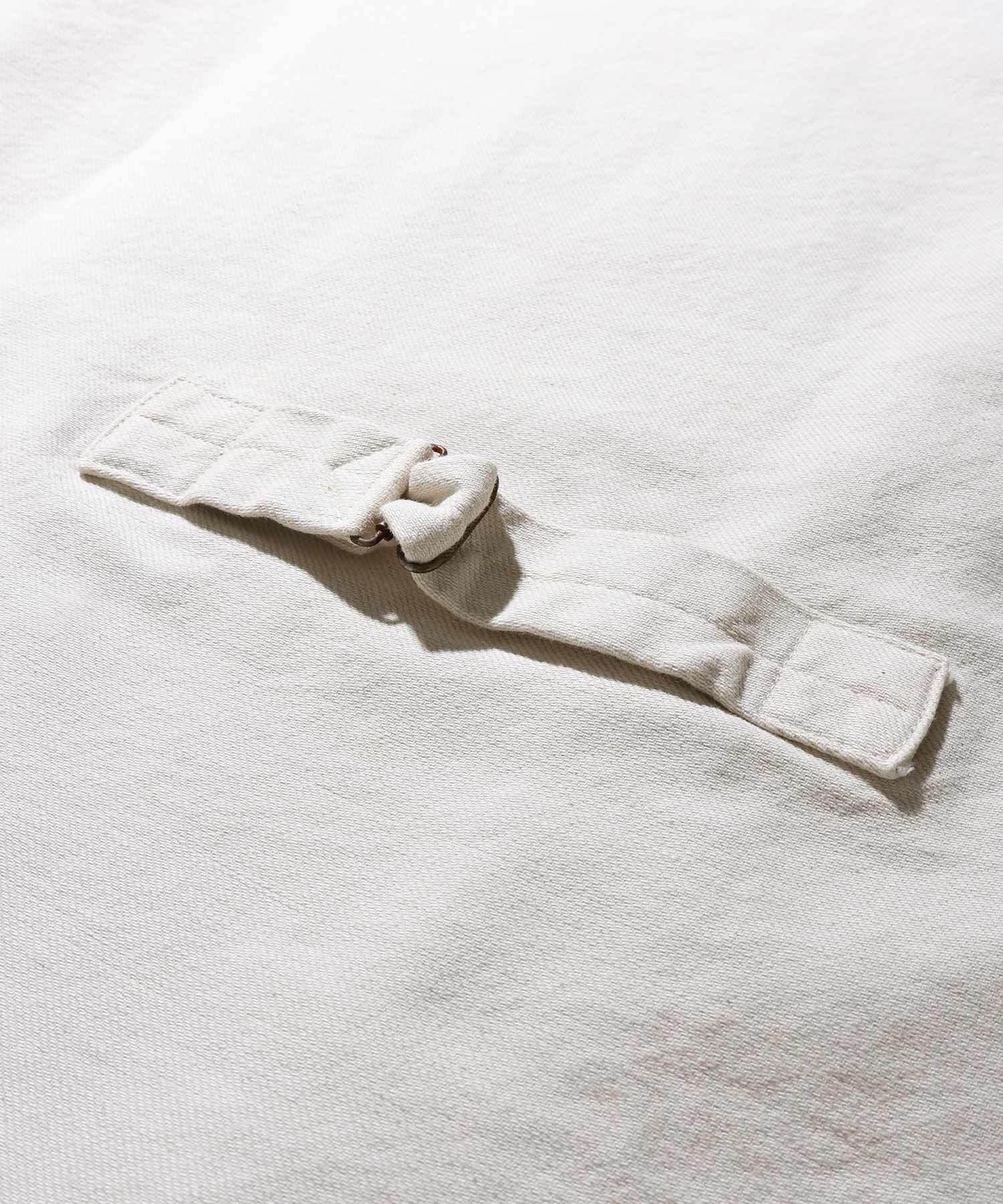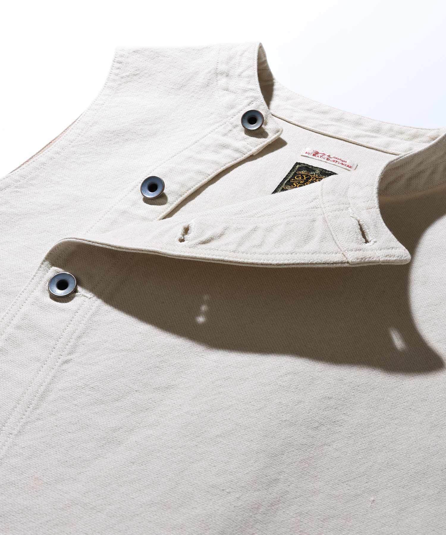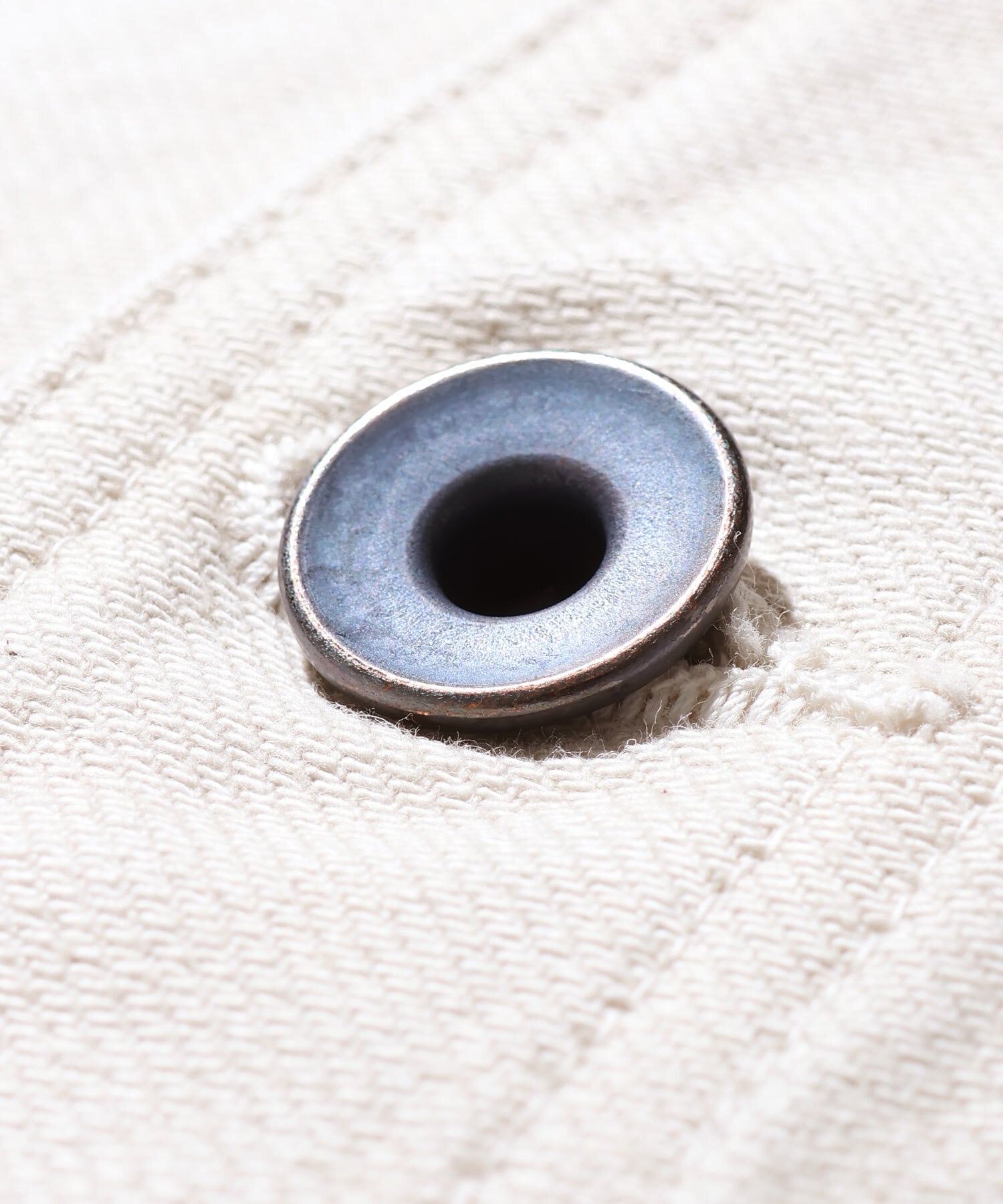 硫化染めの⾵合いに合わせ、銅⾊ボタンを採⽤。