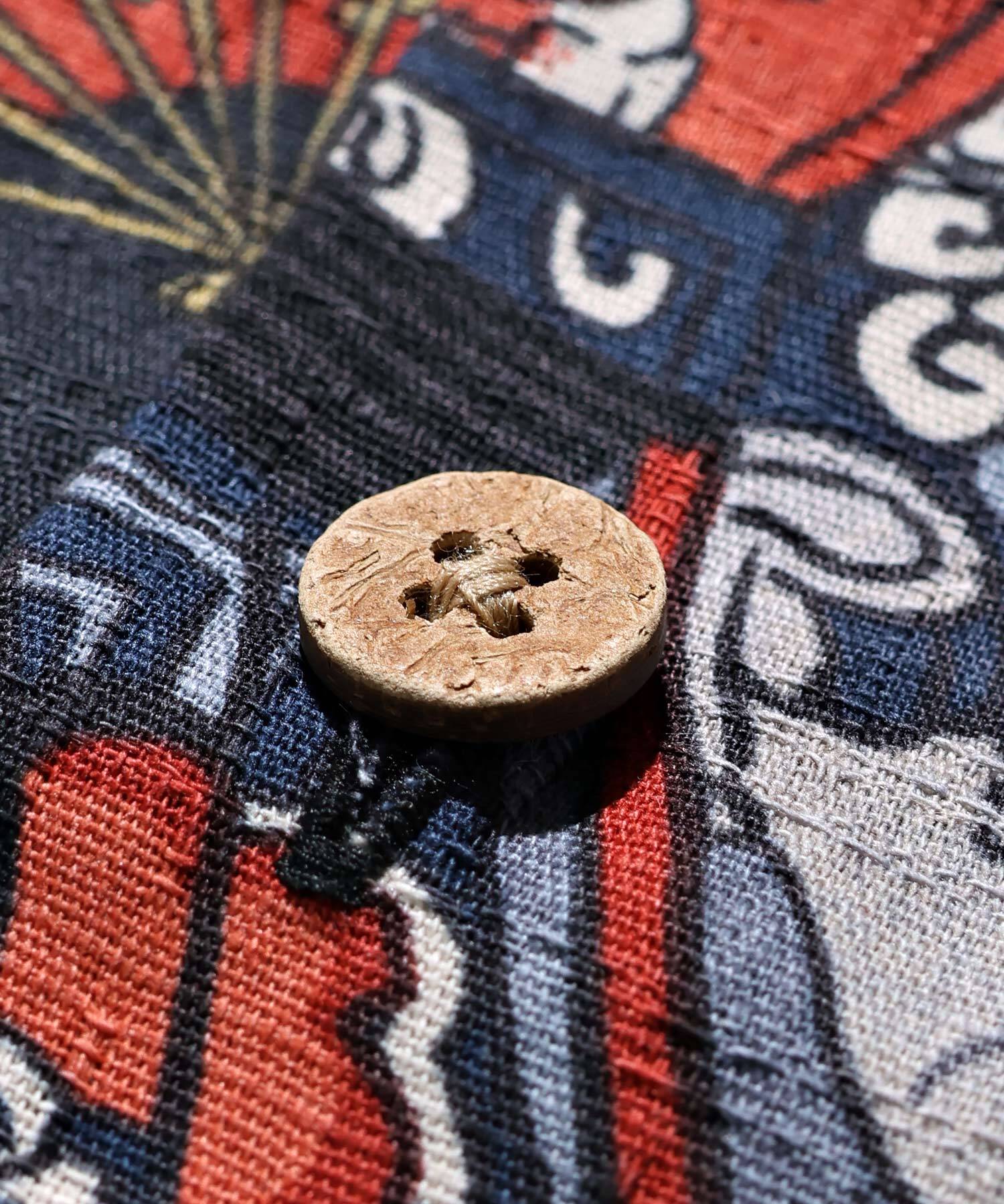 ボタンはヤシの実を削り出したココナッツ釦を採⽤。