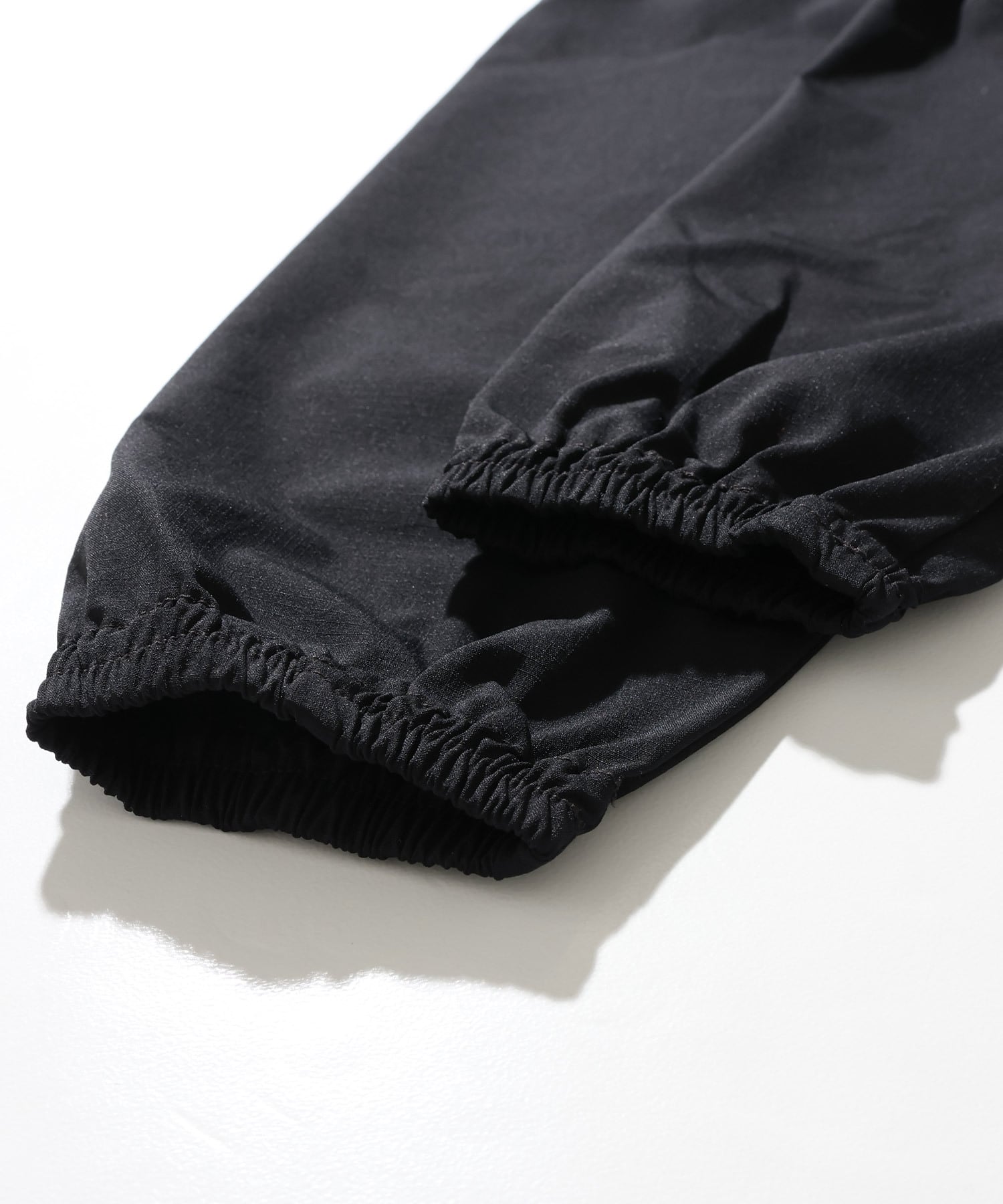 緩い斜⾯で⽔滴を滑り落とす撥⽔⽣地を採⽤。