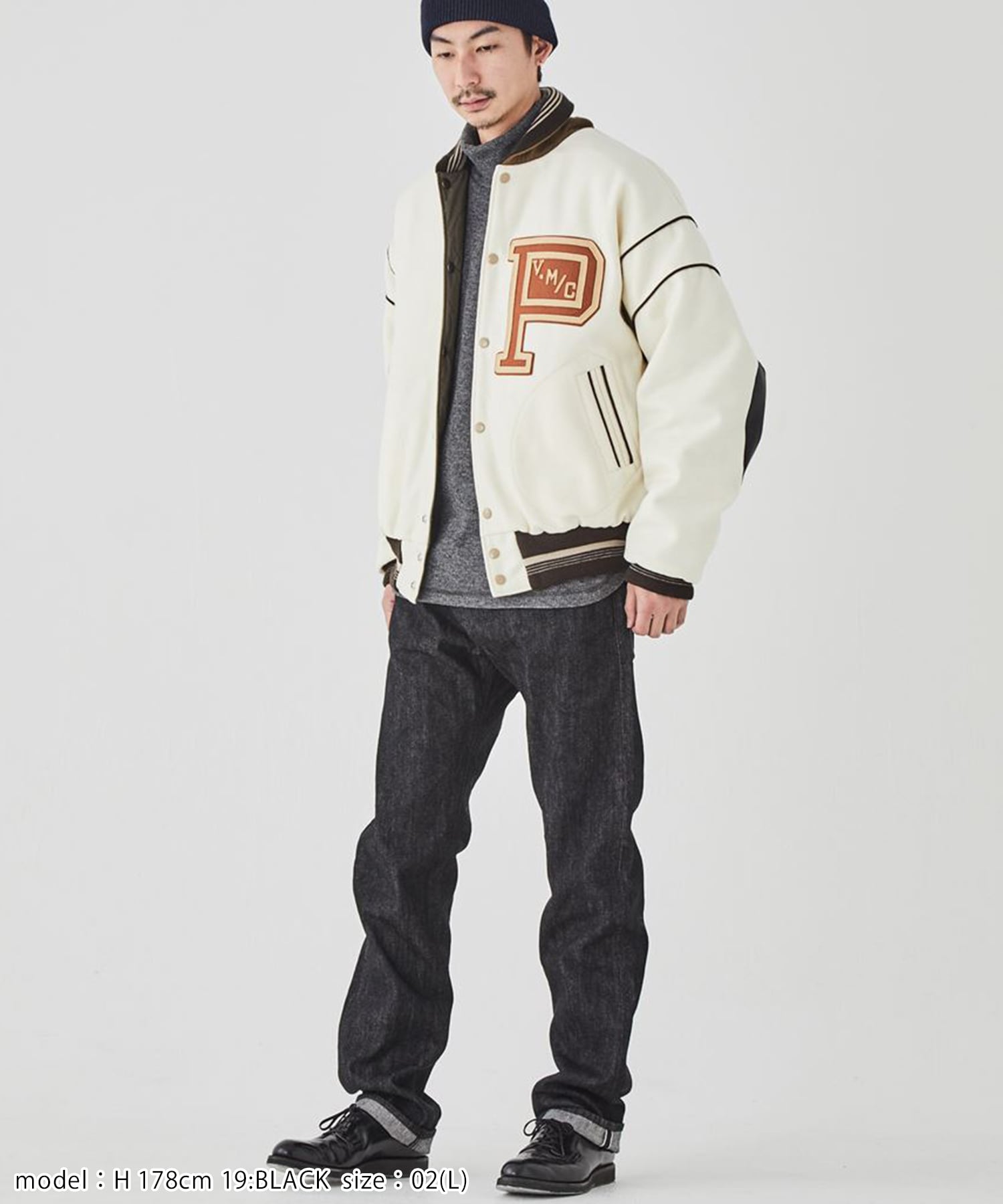 1940年代の大戦モデルの粗野な表情を再現するべく、当時の偶発的に起こっていた染ムラの再現を目指して染色時の絞り調整、酸化調整を研究し、制御・管理することで意図的に当時の染ムラ感を表現しています。